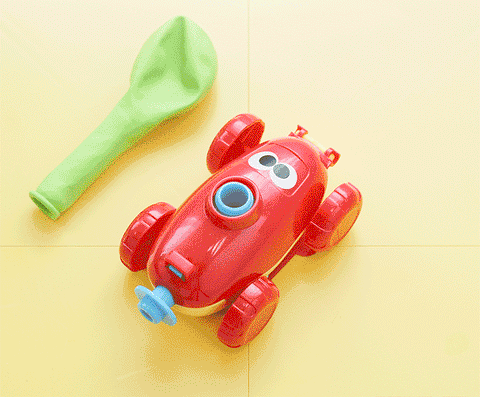 This toy consists of four components: Pump, Cars, Balloons and Extras (depending on package selection). The balloon is attached to the car and then connected to the pump. By using the lever, the balloon is inflated. Finally, the button on the pump is pressed, releasing a small amount of air from the balloon. This causes the car to move forward. The child learns here Isaac's Newton third rule of motion: for every action there is an equivalent opposite reaction. The air is pushed out of the back of the car while the car moves forward! Physics has never been so simple.